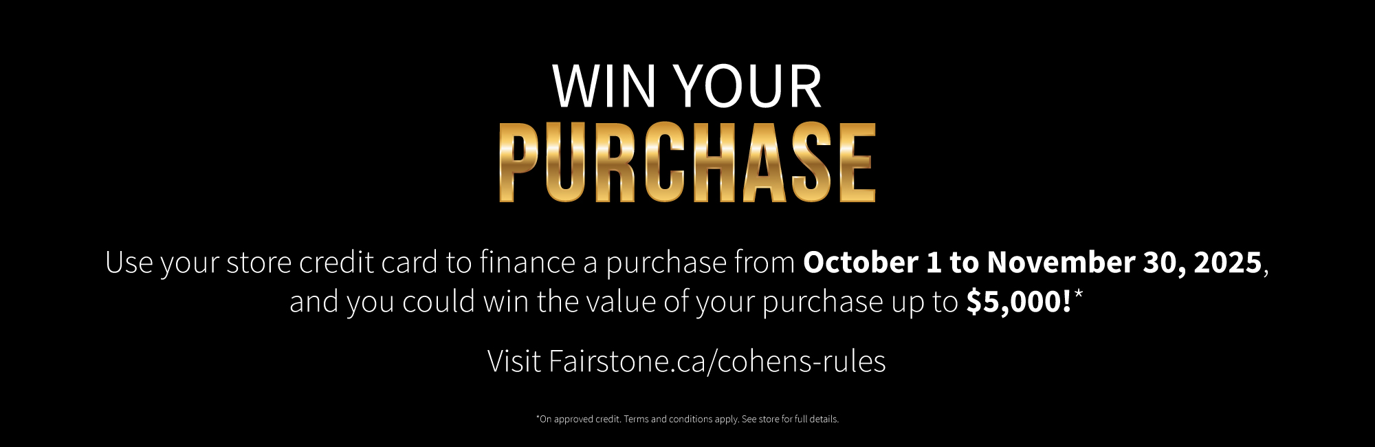 Financing is provided by Fairstone Financial Inc. and is subject to credit approval. Purchases made on approved credit accounts will be subject to the terms and conditions provided in account documents and at point of sale. Additional fees and taxes may apply.