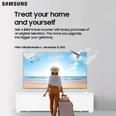 Get a $500 travel voucher with every purchase of an eligible television. The more you upgrade, the bigger your getaway.