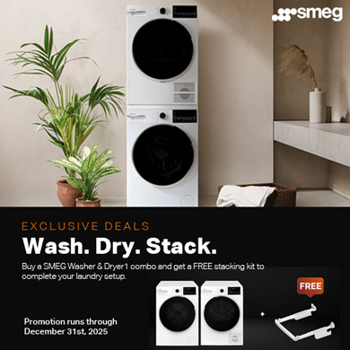 Buy a SMEG Washer & Dryer combo and get a FREE stacking kit to complete your laundry setup