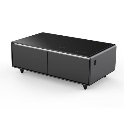 Forno Evoluto Tavolo 51" Black Smart Coffee Table with Dual Refrigerator Drawers Bluetooth 5.0 Audio