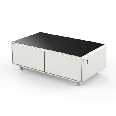Forno Evoluto Tavolo 51" White Smart Coffee Table with Dual Refrigerator Drawers Bluetooth 5.0 Audio