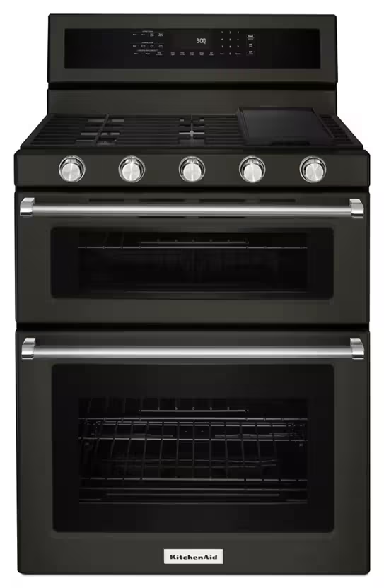 30" KitchenAid 5 Burner Gas Double Oven Convection Range - KFGD500ESS
