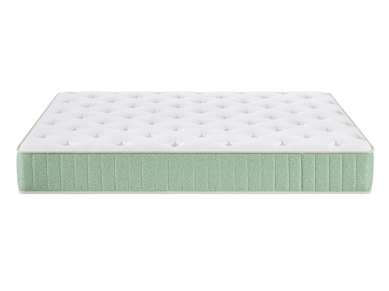 The Honey 10" Hybrid Mattress delivers breathable comfort, pressure relief, and everyday support in a streamlined profile. Its soft, stretch-knit cover features a fresh white top and pale green border for a clean, contemporary look. Inside, a combination of convoluted foam and green tea-infused comfort foam works to ease pressure points and help maintain a fresher sleep environment. Underneath, a full pocket coil system provides consistent lift and support across the entire surface, helping reduce motion transfer and promote better alignment. It’s a well-balanced mattress designed to keep you supported and comfortable night after night.