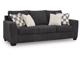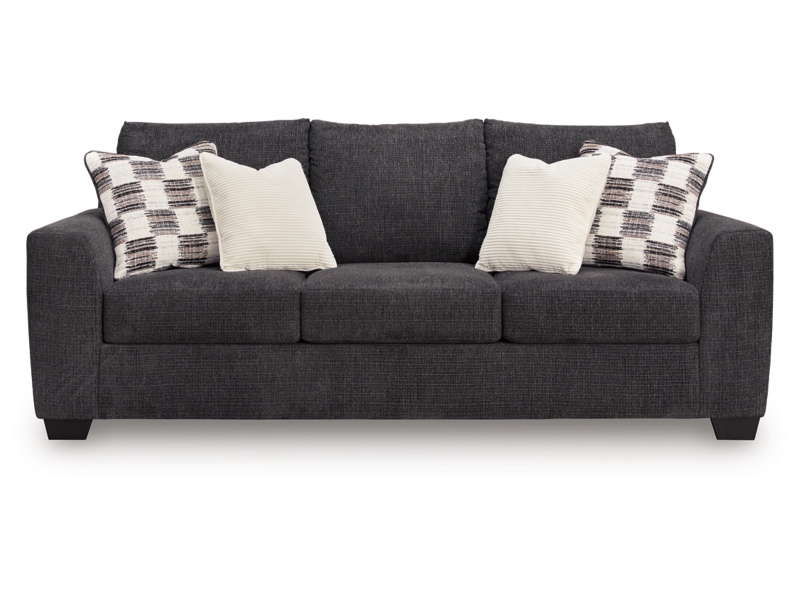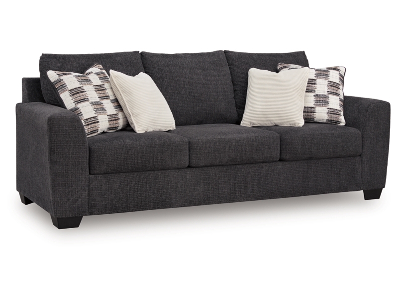 This sofa personifies contemporary comfort. Its clean-lined frame and neutral color lend must-have versatility. Softly textured fabric makes it that much more inviting. A welcome combination of chic style and a cozy feel, this piece completes your living room with modern flair.