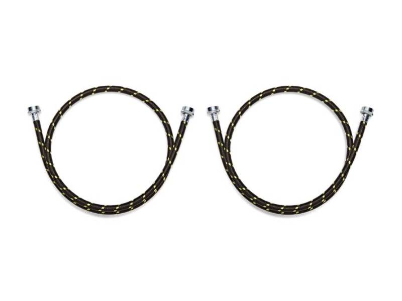 - Set of (2) industrial-grade 5' black nylon braided hoses with brass connectors