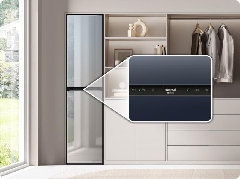 Enjoy a smart way to save energy when using your AirDresser. Simply activate the AI Energy Mode in the SmartThings App* and select one of the Air Dresser’s energy-saving delicate drying courses**. It will then help reduce its energy consumption by up to 15%