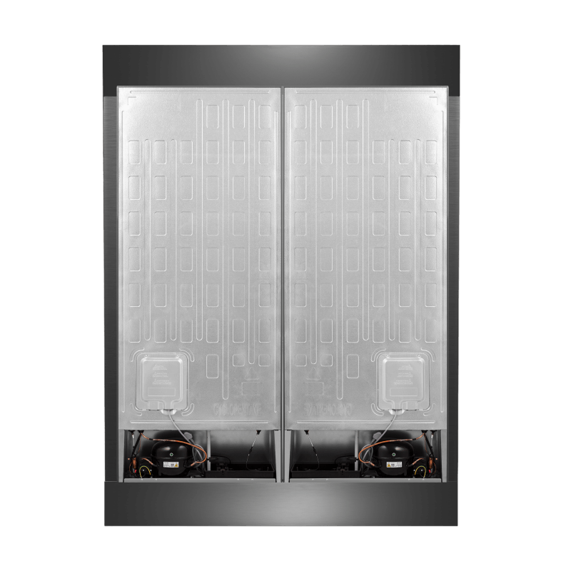 Introducing the FORNO Maderno 60" Wide 27.2 cu.ft. Refrigerator Freezer Built-in Combo with Decorative Grill Trim – a perfect fusion of style and convenience. This refrigerator freezer offers customizable cooling with its convertible function, adapting effortlessly to your specific needs while eliminating the need for tedious defrosting thanks to total no frost technology. Aesthetics meet functionality with a side-by-side door design that seamlessly integrates into your kitchen layout. Elegant glass shelves with silver trim and practical plastic door balconies not only enhance the overall appeal but also offer efficient storage solutions. With the ℉/℃ Transform Ease feature, you can switch between Fahrenheit and Celsius effortlessly. Brilliant LED lighting illuminates the interior, making it a joy to locate your desired items. Six glass shelves and six plastic drawers with silver trim provide flexible storage options, catering to your everyday routine.