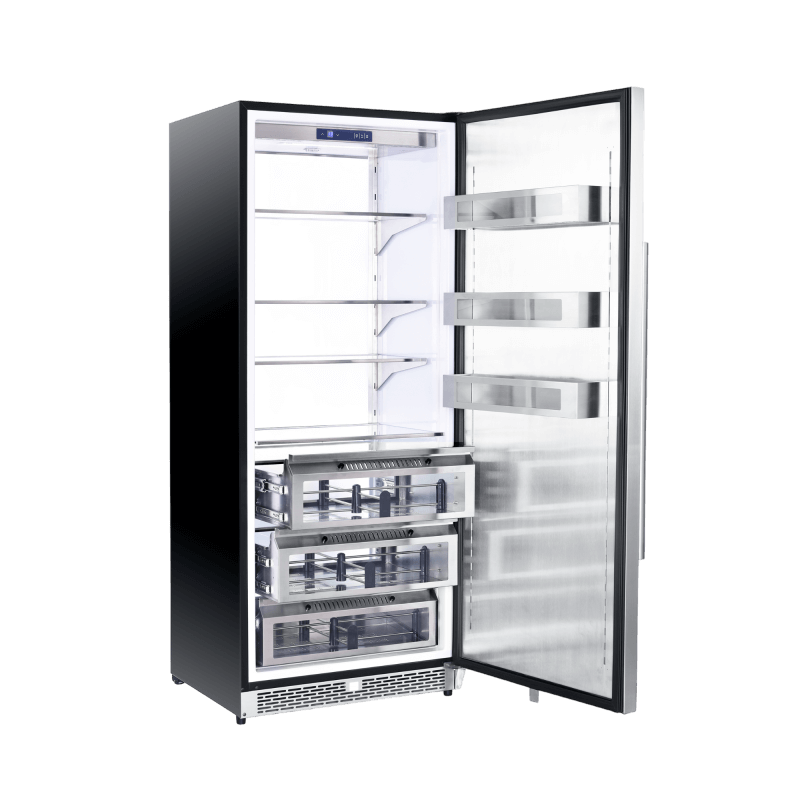 This 30" Forno Colo column refrigerator boasts a 18.4 cu.ft. fresh food capacity, 3 adjustable glass shelves and 3 crisper 304 stainless steel drawers with front glass panel for easy and organized storage, ensuring ample space for all your groceries and food items. The temperature control is conveniently placed on the top inside front of the unit and interior LED lighting provides bright illumination to easily find items. With its Multi Air Flow System and No Frost Design, you can keep your food fresher for longer and it eliminates the hassle of defrosting your refrigerator. Finally, its stainless steel sleek design Pro-Style handle makes it a stylish addition to any kitchen.