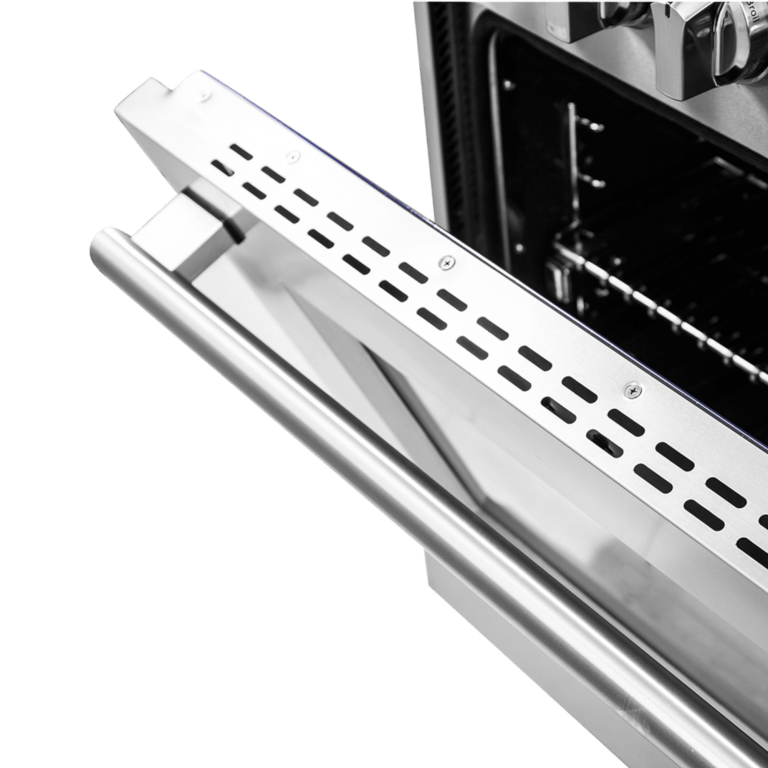 - 3 Heavy-Duty Stainless Steel Telescopic Oven Racks with ball bearing rack guides.