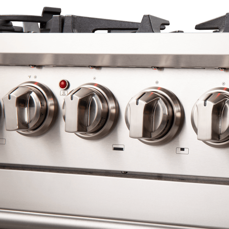 - Pro-Style Handles and Illuminated Zinc Coated Metal Control Knobs and Bezel Rings.