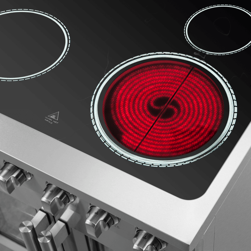 - 4 Radiant Elements combine a total cooking surface output of 6,500 Watts