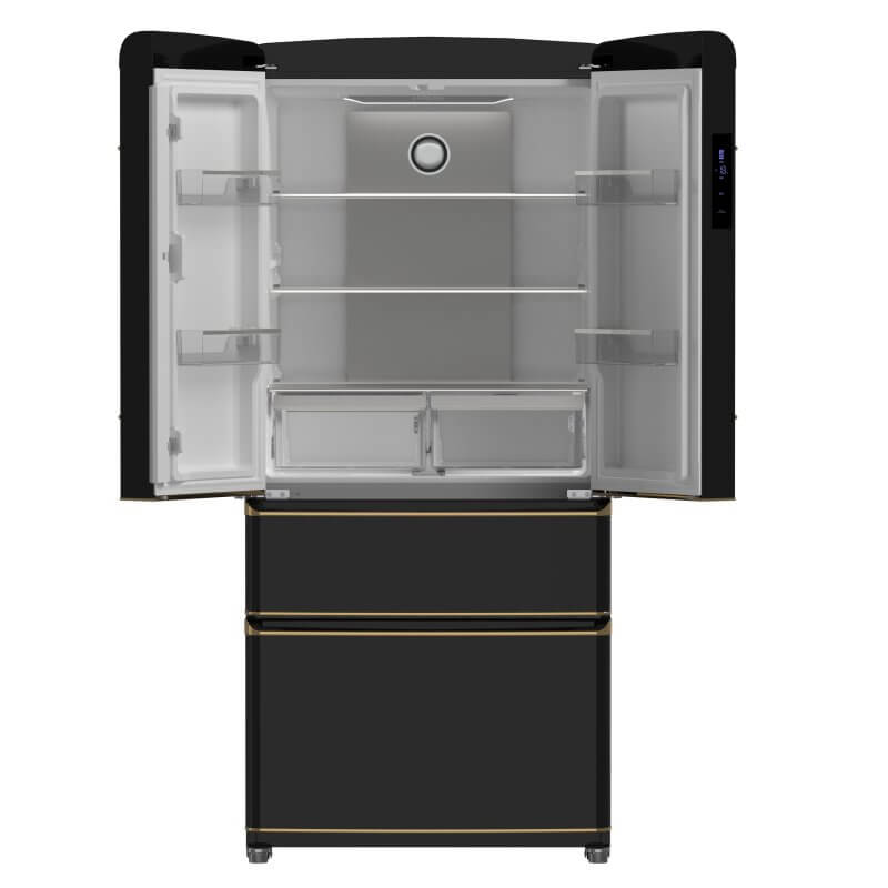 Make a bold statement in your kitchen with our 18 cu.ft. frost-free refrigerator in a sleek black finish, accented with antique brass handles for a sophisticated touch. Offering a spacious 12 cu.ft. fresh food compartment and a 6 cu.ft. freezer, this model provides flexible storage solutions with adjustable glass shelves, door bins, and crispers. Advanced Super Cool and Super Freeze functions keep your groceries fresh, while energy-efficient LED lighting brightens every corner. The no-frost design ensures easy maintenance, and the retro-inspired look with a stainless steel back panel adds timeless elegance to any home. ENERGY STAR certified, this refrigerator combines style and sustainability. Lower the cost of living with Forno.