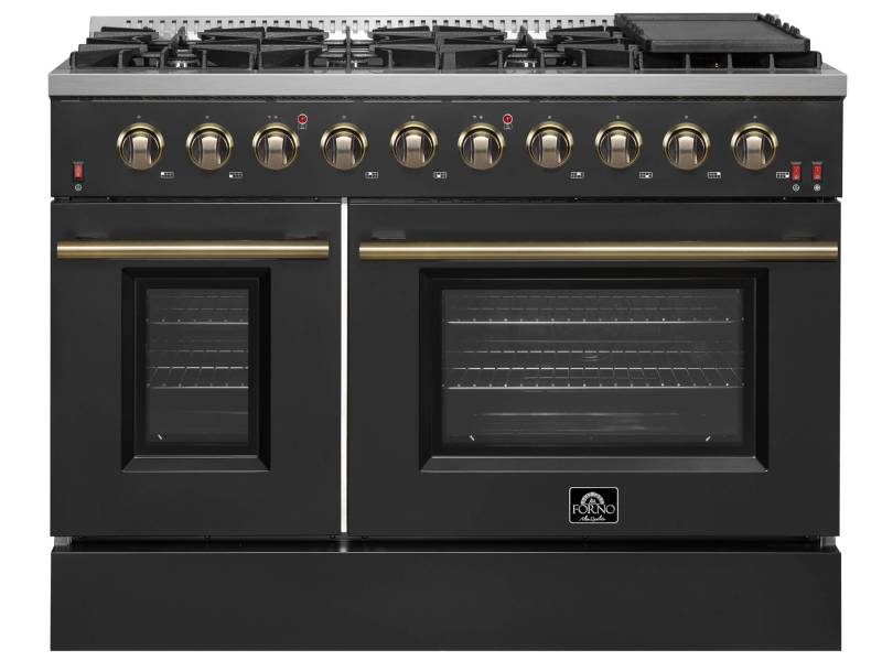 48" Forno Galiano Gas Range 8 Burners Griddle 6.58 cu.ft. Double Ovens - FFSGS6244-48BLK