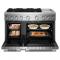 satisfies the needs of the most demanding cooks by combining the precise control of a gas cooking surface and the even baking, roasting and broiling of an electric oven.