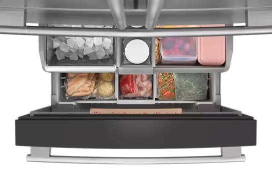 from this impressively large French Door Refrigerator makes room for every farmer's market haul and brings convenience with customizable storage spaces for your unique ingredients.