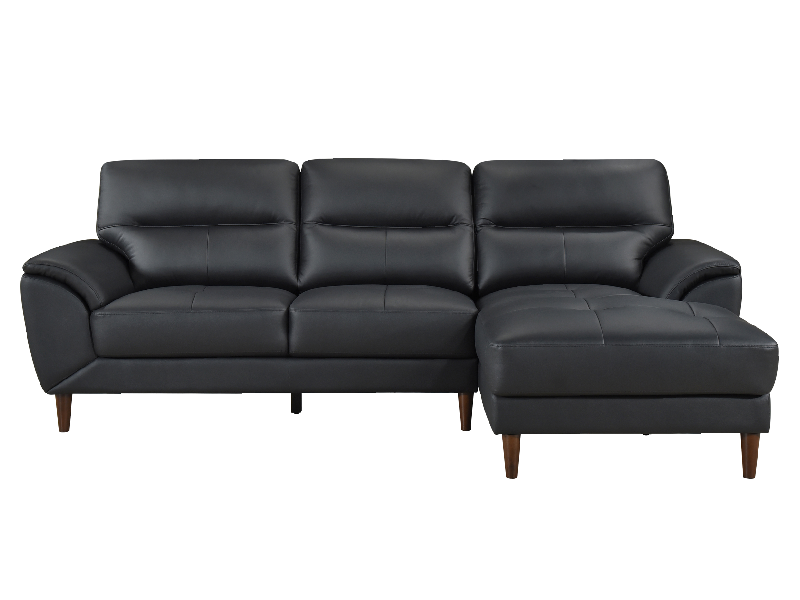 Elevate your living space with the sleek and stylish Ryan Leather Sofa Chaise, designed for both comfort and contemporary appeal. Upholstered in a premium leather/leather match material, it offers the luxurious feel of genuine leather in high-contact areas while maintaining durability and value throughout. The right-hand-facing chaise provides ample room for lounging, stretching out, or entertaining guests, while the clean lines, tufted back cushions, and subtly angled armrests create a refined, contemporary silhouette. Supported by sleek tapered wooden legs, this sectional delivers both stability and sophistication, making it a standout addition to any living room.