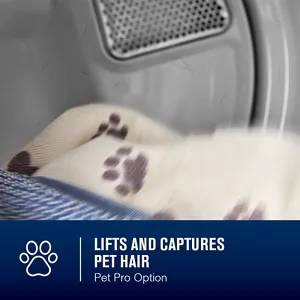 The Maytag® Pet Pro dryer traps and removes loads of pet hair from clothes. The Pet Pro option lifts and captures pet hair from clothes and traps it in the lint trap. Extra Power boosts drying power to get thick fabrics drier the first time,* while Advanced Moisture Sensing helps evenly dry loads.Harness the power of steam to help prevent wrinkles and refresh clothes with a steam-enhanced dryer. In the never-ending fight against pet hair, this Maytag® dryer is ready to conquer pet hair like a pro.*Results may vary based on load size and type.