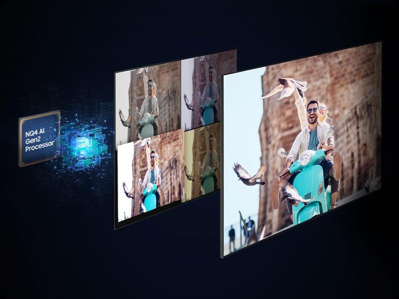The NQ4 AI Gen2 Processor uses the power of 20 AI neural networks to optimize picture and sound quality. The result is impressive performance, whether you're streaming shows, playing video games or watching live sports.