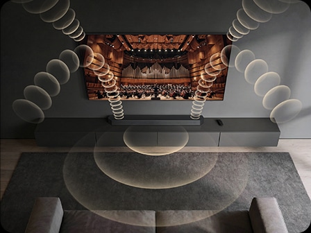 Experience supreme audio immersion through AI-powered synergy between TV and soundbar pre-learned through thousands of sources. This powerful duo simultaneously creates next-level surround sound experience for diverse scenes.