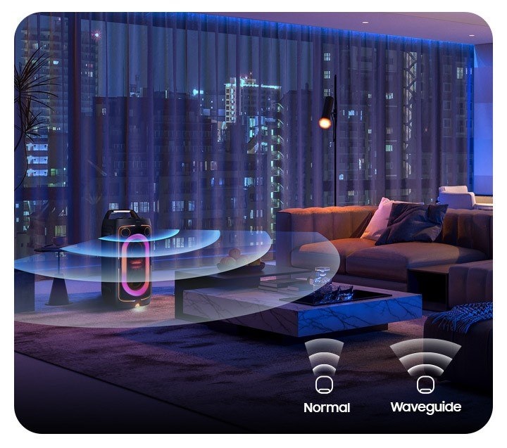 Bring the vibe with five customizable modes and six lighting patterns that let your speaker shine. Match the mood settings and lighting to the beat or the atmosphere through the Samsung Sound Tower app.*