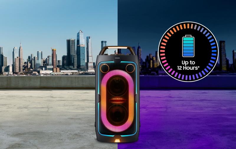 Let the beat blast for up to 12 hours* with the built-in battery –perfect for late-night gatherings or on-the-go adventures. When the battery runs low, plug in your Sound Tower to keep the music going without missing a beat.