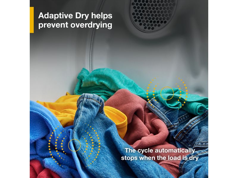 Adaptive Dry uses 1 built-in sensor to measure temperature levels to help prevent over-drying and automatically stop the cycle when the load is dry.