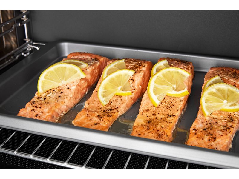 This built-in microwave gives you both seamless integration that matches your wall oven, as well as great cooking features. Air Fry Mode gives you crispy results without countertop clutter. Roast Mode creates a crunchy outer layer. And Grill Mode sears meat and vegetables. Plus, it features smartphone integration and a Black Stainless exterior.