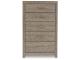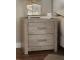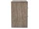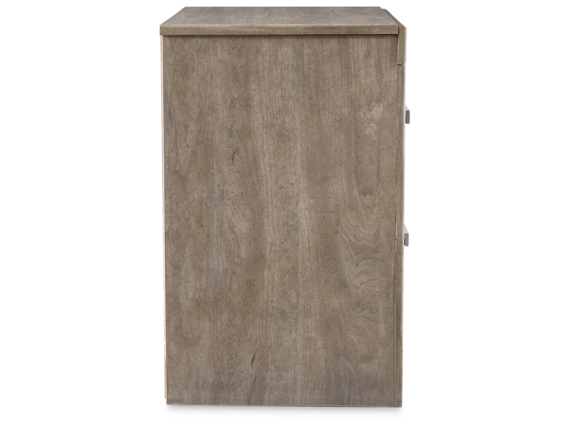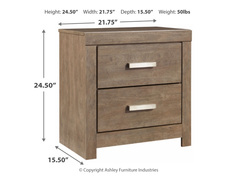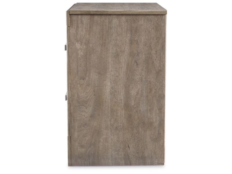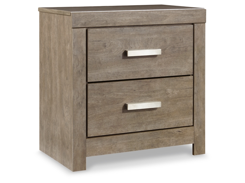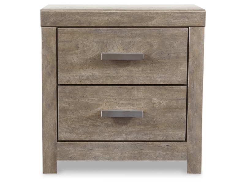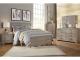 A sophisticated modern chunky look with large satin nickel colored hardware. Warm gray vintage finish with subtle pearl effect over replicated cherry grain. Mouldings across headboard give a thick planked look. Side roller glides for smooth operating drawers. Drawer interiors finished with a replicated linen design. Slim USB charger located on the back of the night stand tops. Safety is a top priority, clothing storage units are designed to meet the most current standard for stability, ASTM F 2057 (ASTM International). Drawers extend out to accommodate maximum access to drawer interior while maintaining safety.