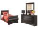 Signature Design by Ashley Huey Vineyard Twin Sleigh Bed with Dresser and Mirror - B128B7