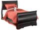 Louis Philippe styling. Trendy replicated black paint. Shapely top mouldings on the case pieces. Antiqued pewter color metal hardware complementing the Louis style. Side roller glide drawer system for smooth operating drawers. Curvaceous footboard panel capped with an elegant sleigh rail. Safety is a top priority, clothing storage units are designed to meet the most current standard for stability, ASTM F 2057 (ASTM International). Drawers extend out to accommodate maximum access to drawer interior while maintaining safety.