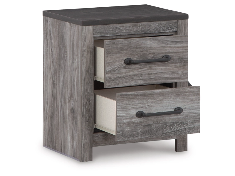 Alluring smoky gray hues create an ambiance that just feels right. This bedroom package has a charming wood-like appeal enriched by a two-tone, textured look. Light neutral shades contrasted by a dark charcoal finish bring a refined yet relaxed feel to contemporary decor and a sense of serenity to your space.