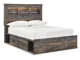Burnt orange and teal colors accent a brown rustic finish in a replicated woodgrain with authentic touch. Large scaled dark colored handles. Cases feature a framed front and pilasters. All panel headboards (53,57,58,87) feature decorative matte black sconce lights. Side roller glides for smooth operating drawers. All panel headboards (53,57,58,87) can attach to a bolt-on metal bed frame B100-31 or B100-66 respectively. Drawers lined with a faux linen laminate for a clean, finished look. Slim profile dual USB chargers located on the back of the night stand top and the side of the headboards. All side storage options (50,150,60,160) requires the use of the B100-11, B100-12, B100-13 or the B100-14 roll slats. All under bed storage units (50,150,60,160) accommodates to 10.5"W x 10.5"D x 11"H cube storage bins. LED lights accent bookcase headboards (65,69,85). All beds have a panel footboard (52,84,54,56) and storage footboard option (84S,54S,56S). Queen (65) and king (69) headboards can attach to a bolt-on metal bed frame B100-31 or B100-66 respectively. Queen (65) bookcase headboard is capable of attaching a full sized metal bolt on bed frame. Full (85) headboard can attach to a bolt-on metal bed frame B100-21. Safety is a top priority, clothing storage units are designed to meet the most current standard for stability, ASTM F 2057 (ASTM International). Drawers extend out to accommodate maximum access to drawer interior while maintaining safety.