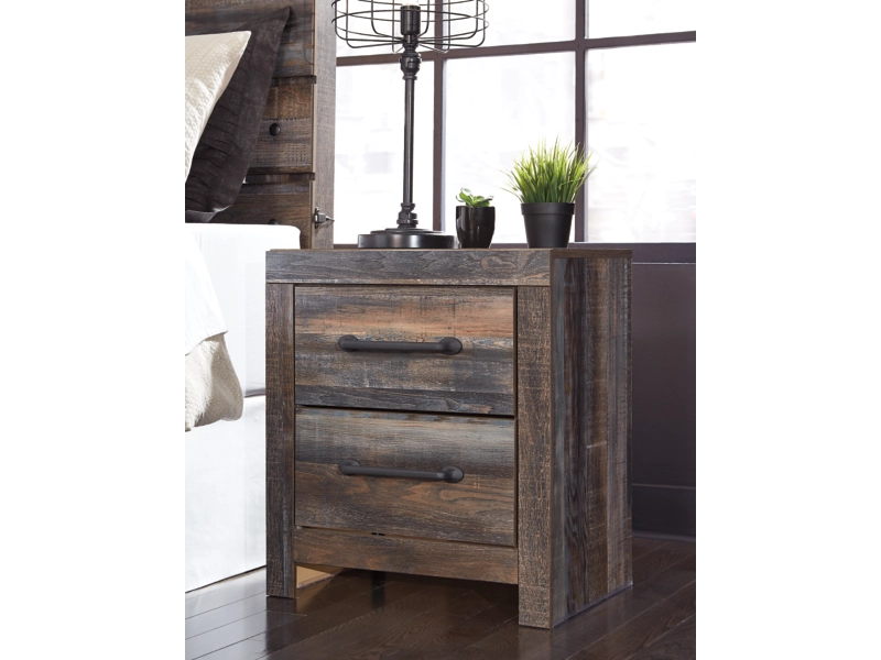 When merged in just the right way, rustic and industrial styles can make one happy marriage. Case in point: this bedroom package. A refined take on barn board beauty, its complex, replicated wood grain showcases hints of burnt orange and teal tones for a sense of weatherworn authenticity. Elongated metal drawer pulls elevate the aesthetic.