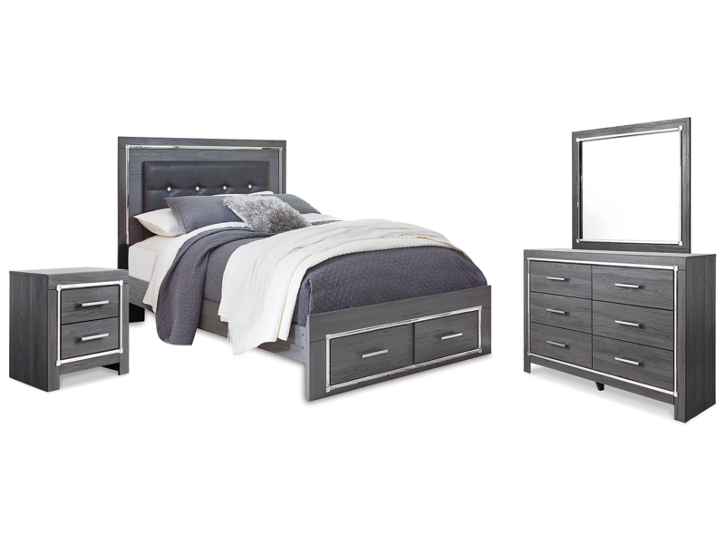 Signature Design by Ashley Lodanna Queen Upholstered Panel Storage Bed, Dresser, Mirror, and Nightstand - B214B20