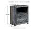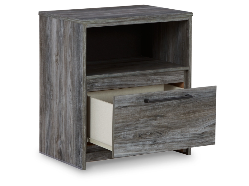 Smokey gray finish over replicated Oak grain with authentic touch. Contemporary handles in an antiqued gunmetal finish. Full, Queen and King storage bed option features 6 drawers of storage. Twin storage bed has 5 drawers. Cases feature faux linen finished drawer interiors. Modern bookcase headboard includes a dimming LED light under the shelf. Slim USB charger located on the back of the night stand tops. Side roller glides for smooth operating drawers. Queen and king storage footboard (54S,56S) requires the B100-13 or B100-14 roll slats. Full storage footboard (84S) requires the B100-12 roll slats. Twin (53) and full (87) headboards can attach to a bolt-on metal bed frame B100-21. Mirror (35) has the versatility to mount on the dresser or to the wall horizontally or vertically. Slim profile dual USB chargers located on the back of the night stand top and the side of the headboards. Queen (57) and King (58) headboards can attach to a bolt-on metal bed frame B100-31 or B100-66 respectively. Safety is a top priority, clothing storage units are designed to meet the most current standard for stability, ASTM F 2057 (ASTM International). Drawers extend out to accommodate maximum access to drawer interior while maintaining safety.