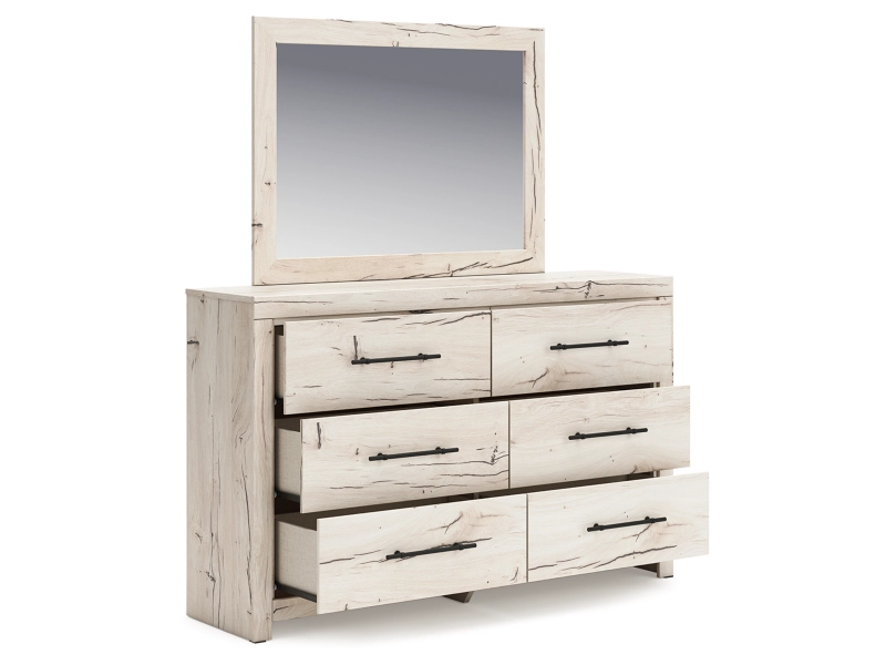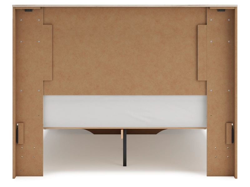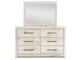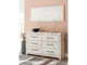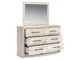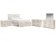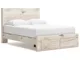 Rustic white finish over replicated reclaimed Oak grain with authentic touch. Cases feature a framed front and pilasters. Bed features a thick and heavy design. Contemporary handles in a dark pewter color finish. Side roller glides for smooth operating drawers. Drawer interiors finished with a replicated linen design. Slim USB charger located on the back of the nightstand tops. Queen (57) and king (58) headboards can attach to a bolt-on metal bed frame B100-31 or B100-66 respectively. Queen (57) panel headboard is capable of attaching a full sized metal bolt-on bed frame. All storage footboards (54S,56S) require the B100-13 or B100-14 roll slats. Queen and king storage bed option features six drawers of storage. Headboards (57,58) are compatible with all footboard options (54,54S,56,56S). Mirror (36) has the versatility to be mounted on dresser or wall horizontally or vertically. Safety is a top priority, clothing storage units are designed to meet the most current standard for stability, ASTM F 2057 (ASTM International). Drawers extend out to accommodate maximum access to drawer interior while maintaining safety.