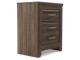Vintage aged brown rough sawn finish over replicated oak grain. Large scaled rustic bedroom collection features case pilasters and thick poster bed posts. Substantial warm pewter color drawer handles. Poster bed offers optional footboard storage. Side roller glides for smooth operating drawers. Queen (57) and king/cal king (58) headboards can attach to a bolt-on metal bed frame B100-31 or B100-66 respectively. Safety is a top priority, clothing storage units are designed to meet the most current standard for stability, ASTM F 2057 (ASTM International). Drawers extend out to accommodate maximum access to drawer interior while maintaining safety.
