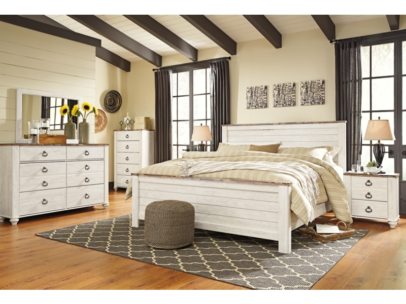 Signature Design by Ashley Willowton King Panel Bed, Dresser, Mirror, and Nightstand - B267B38