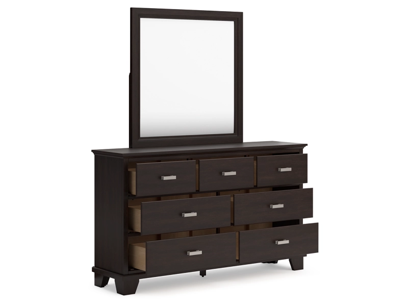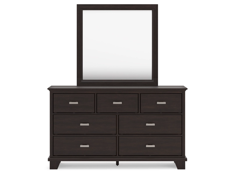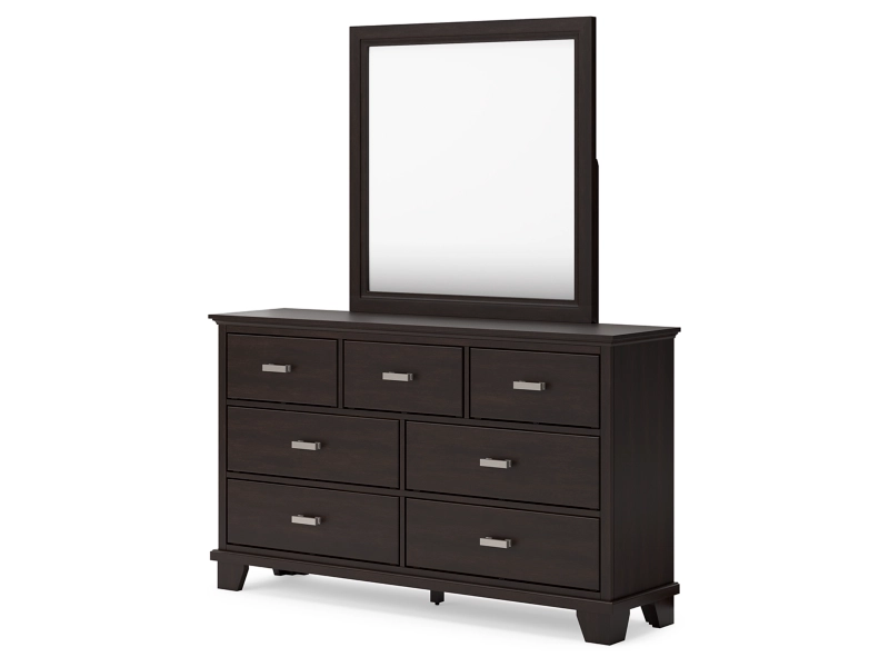 Feast your eyes on this richly versatile bedroom package. Its traditional-inspired dark brown finish effortlessly blends with contemporary details to create a stunning look that's not too stuffy or too trendy. Such a refined way to wake up your bedroom style.