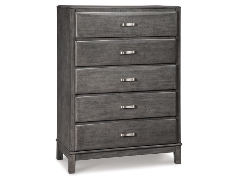 Contemporary style shapes up beautifully with designer elements evident from every angle in this bedroom set. Crafted with quality, contoured surfaces disguise ample storage options. Sporting a distinctive weathered gray finish, this set is the epitome of casual elegance.