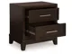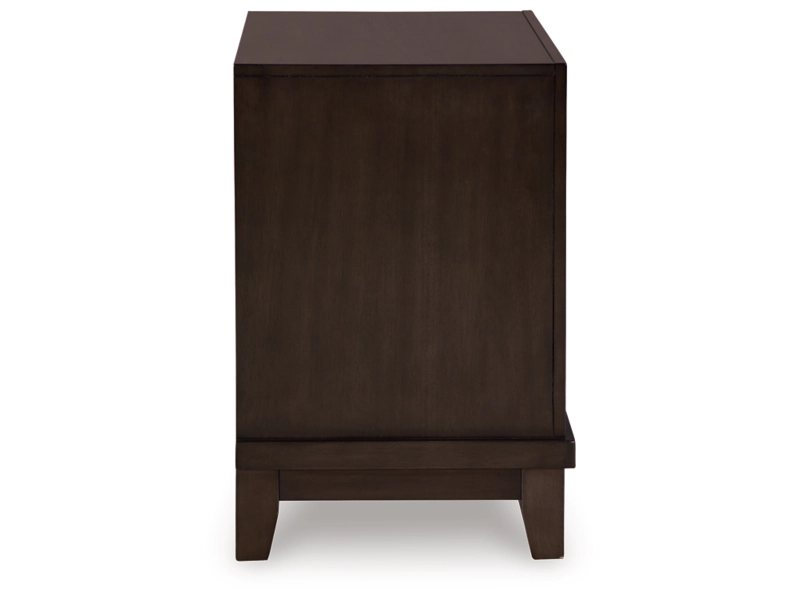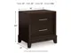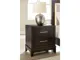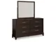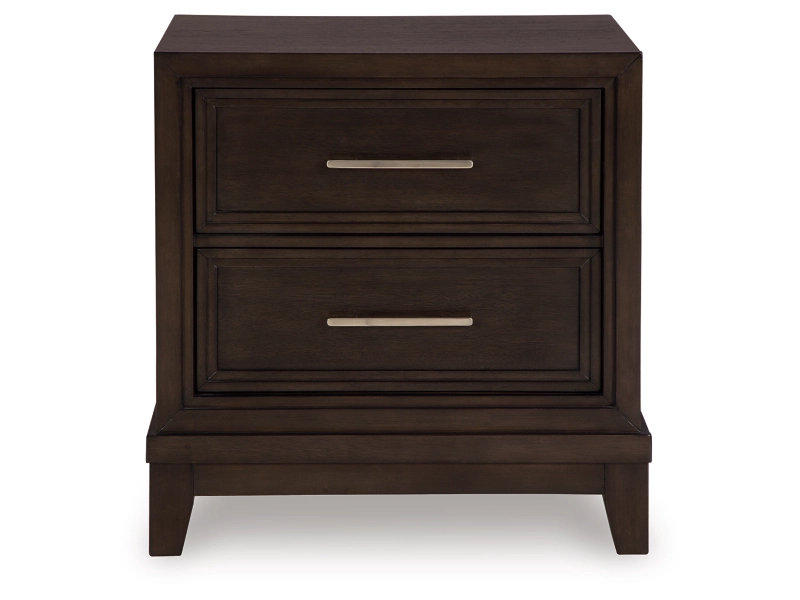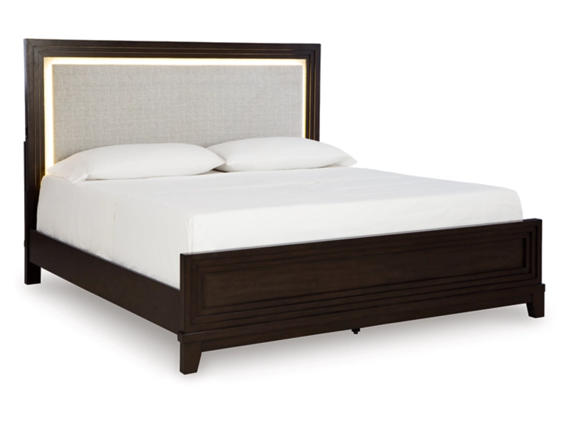 Contemporary design. Made with hardwood solids, engineered wood and MDF substrates. Finished in trend-right grayish brown wood color. Art Deco inspired stepped moulding frame for a fresh take on classic contemporary design. Contemporary styled metal bar pulls are finished in a satin nickel color for a touch of sophistication. Drawers feature dovetail drawer construction, fully finished interiors and heavy duty ball-bearing side glides. Headboard features a floating inset upholstered panel with a light gray Next-Gen Nuvella™ performance fabric for worry free cleanability and an LED back-light. A light switch is located on each side of the headboard and includes a convenient dual USB [ USB-A and USB-C ] charging port to help keep devices charged overnight.