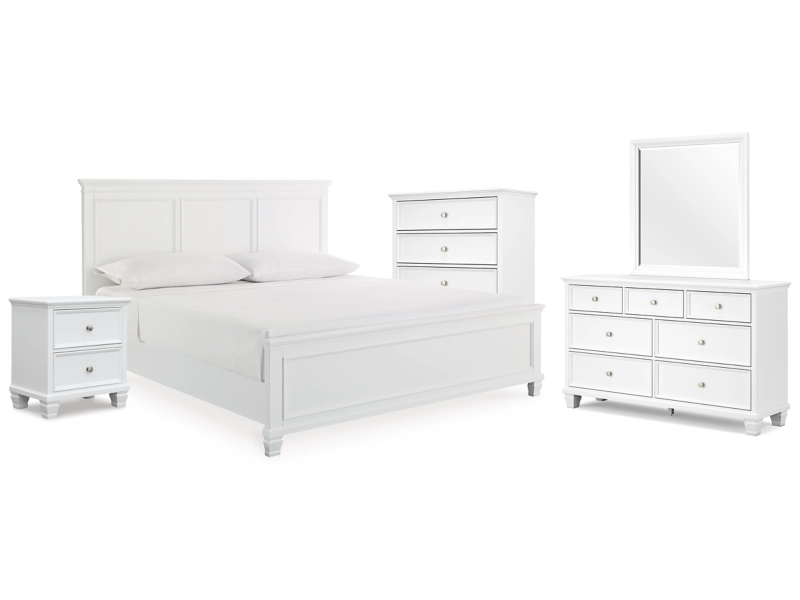 Description | King Panel Bed, Dresser, Mirror, Chest and Nightstand |