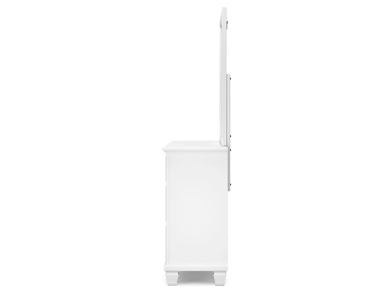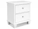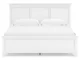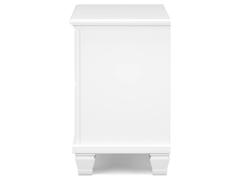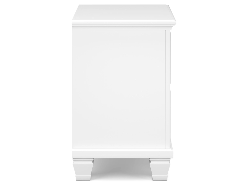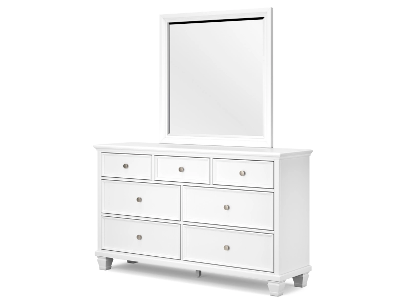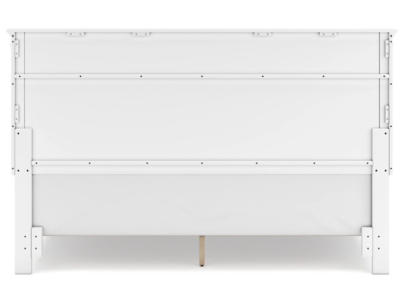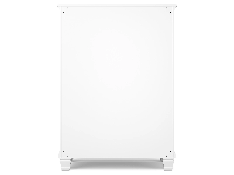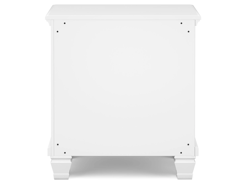 Timeless casual design. Made with hardwood solids and MDF substrate. Clean contemporary white painted finish. Round metal drawer knobs with a satin nickel color finish. Drawers feature French/English dovetail construction with metal ball-bearing side glides. Thick profiled tops, framed drawer fronts and traditional tapered feet. The storage drawers in the footboard offer extra deep space for storing larger bedroom essentials. Full roll slat foundation for mattress only. No foundation box spring required.
