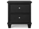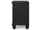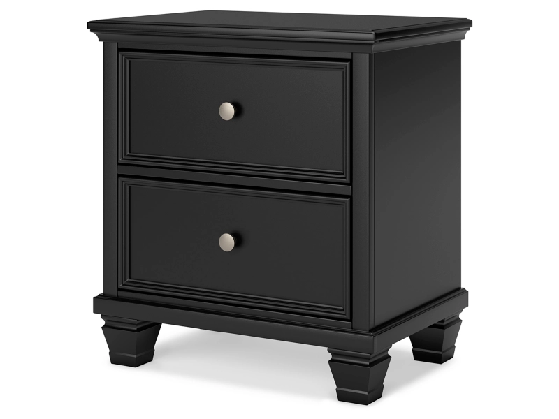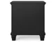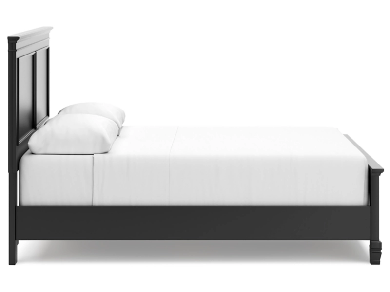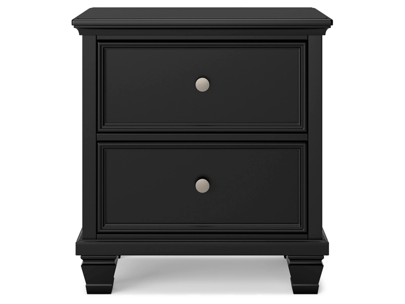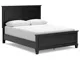Timeless casual design. Made with hardwood solids, birch veneer and MDF substrate. Clean contemporary black painted finish. Round metal drawer knobs with a satin nickel color finish. Drawers feature French/English dovetail construction with metal ball-bearing side glides. Thick profiled tops, framed drawer fronts and traditional tapered feet. The storage drawers in the footboard offer extra deep space for storing larger bedroom essentials. Full roll slat foundation for mattress only. No foundation box spring required.