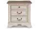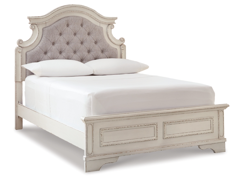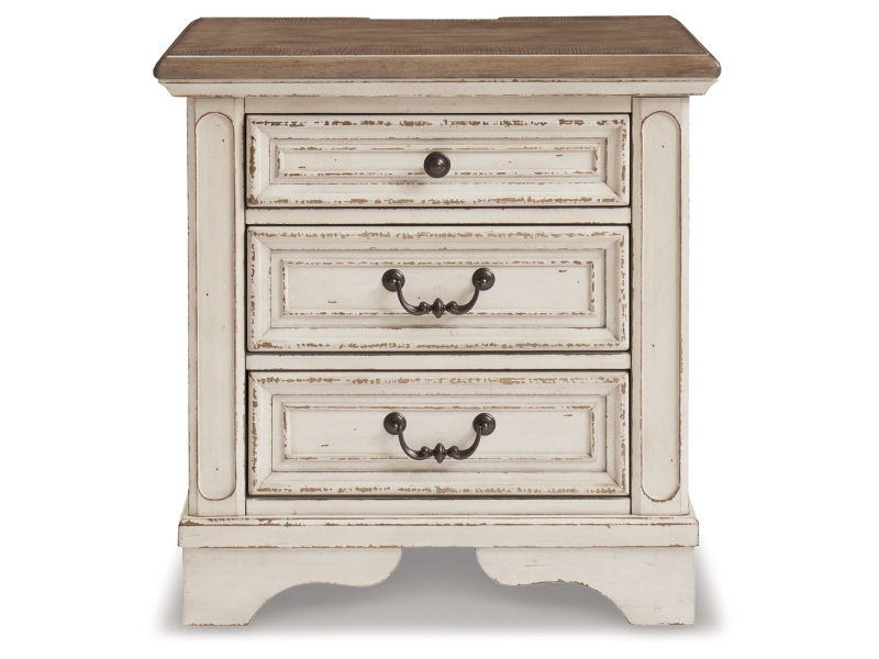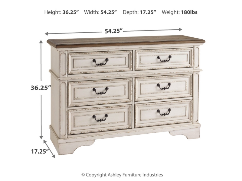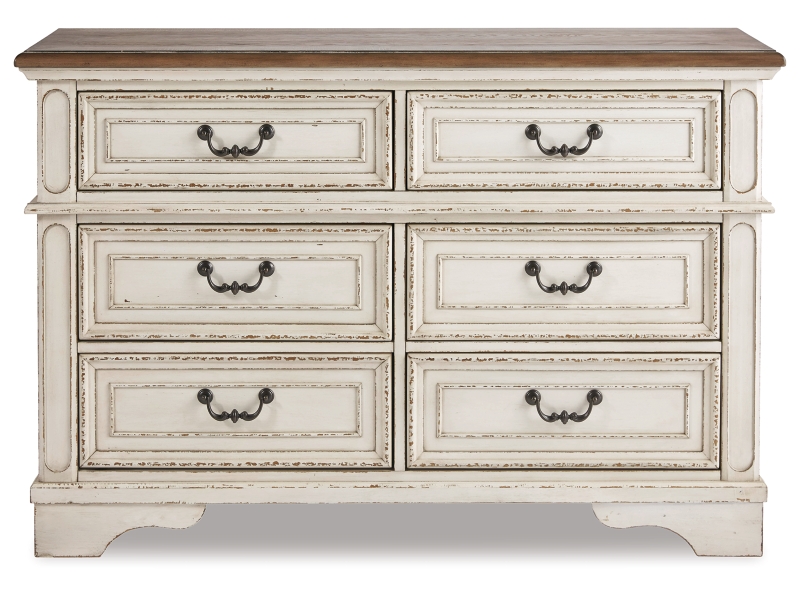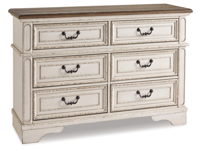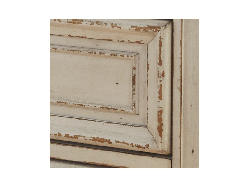 Elevating the art of traditional cottage styling, this bedroom package is your dream bedroom retreat realized. This brilliantly crafted ensemble wows with an antiqued two-tone aesthetic, blending a chipped white with a distressed wood finish for added charm. Ornate details add a refined, classic touch.