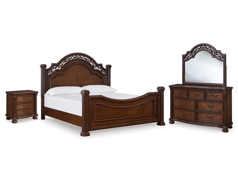 Description | King Poster Bed, Dresser, Mirror and Nightstand |