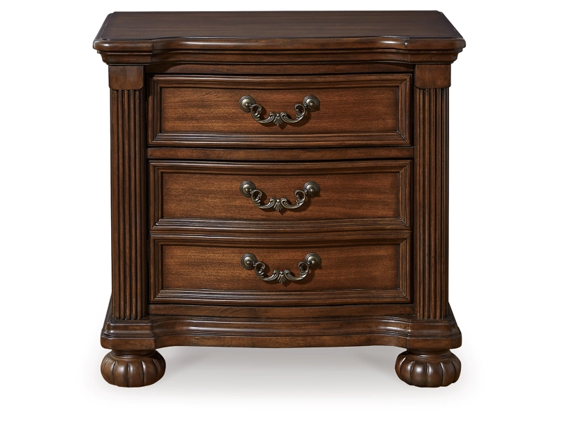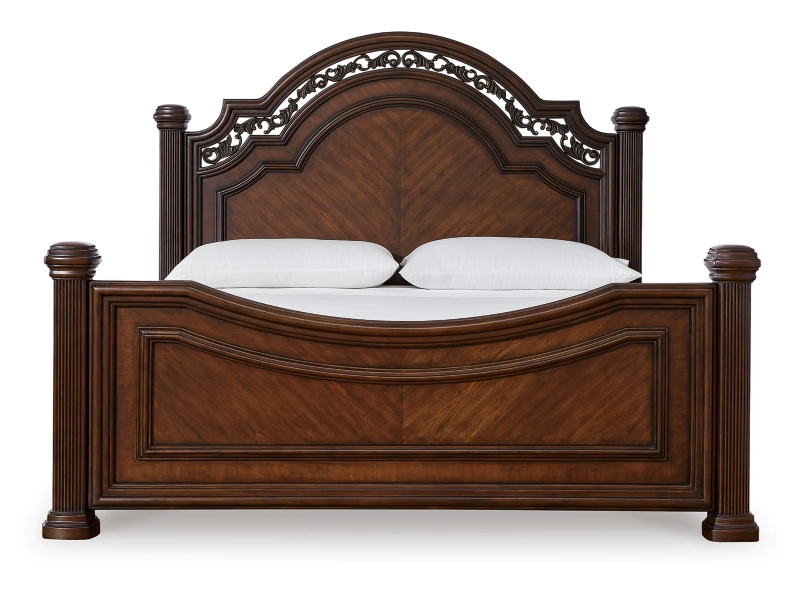 Take inspiration from the traditional luxury of this bedroom package. Classic with a rich cherry brown finish, its stately presence graces your room with an air of opulence. Stunning decorative details add an exquisite touch. Your restful retreat has never been so refined.