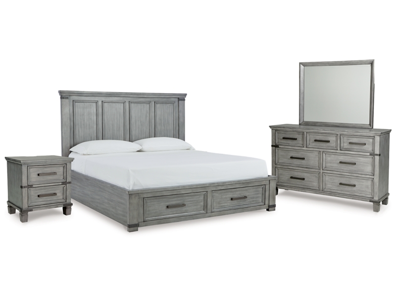 Description | California King Panel Storage Bed, Dresser, Mirror and Nightstand |
