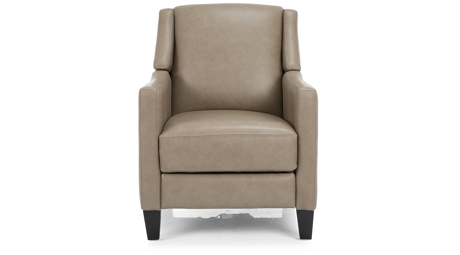 Recliner chair with high back, slim arms and exposed wood legs. This streamline design puts comfort center stage. At a touch of a button, you can recline with foot rest extended and just relax. Available in Push back or Power.