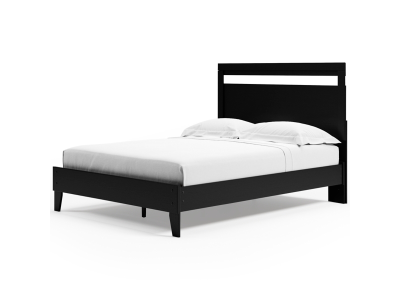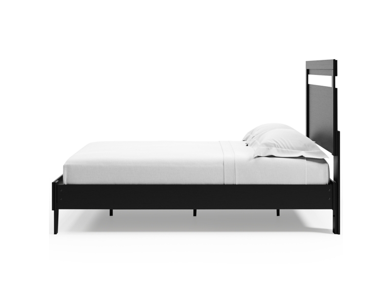 Practical and attractive, this bedroom package blends seamlessly with modern decor and makes a smart addition. Its linear profile is enhanced by a matte black finish with subtle replicated wood grain.